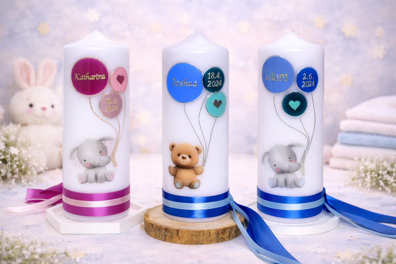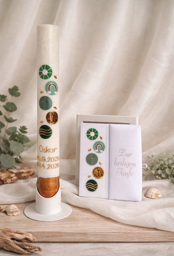 Ich bin stolze Mutter von drei tollen Kindern, die alle ein zauberhaftes Taufkerzen-Set erhalten haben. Zünde die Kerze an und lass liebevolle Erinnerungen an diesem besonderen Tag aufleuchten.