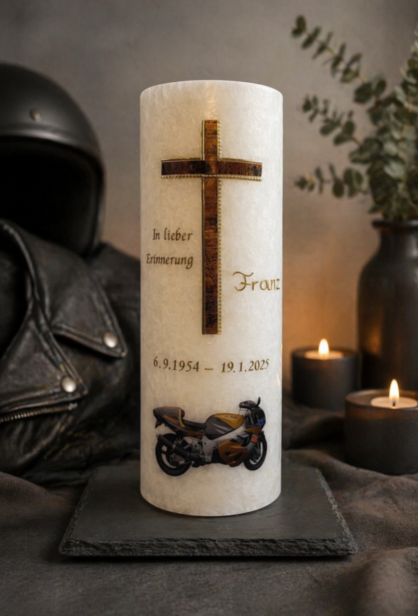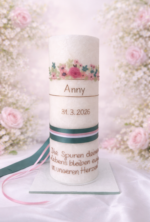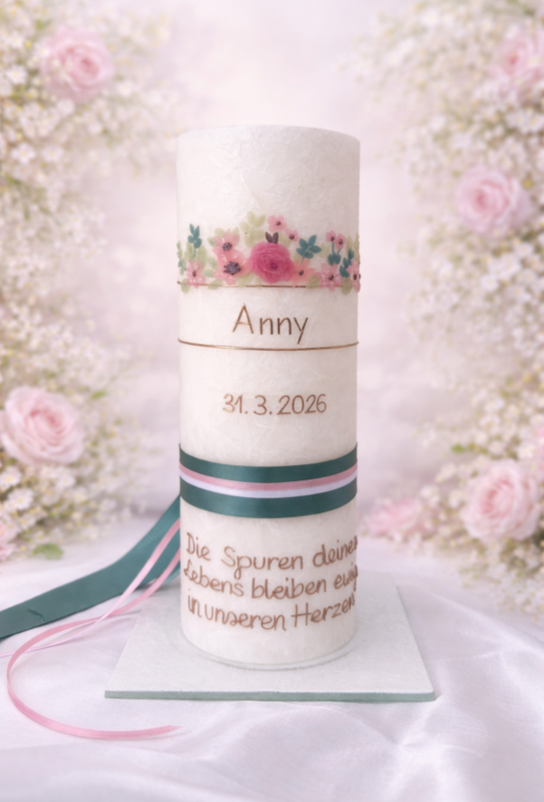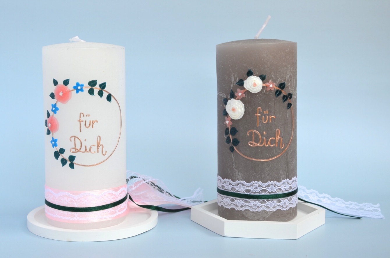 Seit der Taufe meines jüngsten Sohnes habe ich Freude daran gefunden, Kerzen mit Wachs zu verzieren. Meine Kreativität habe ich 2024 vom Hobby zum Beruf gemacht.